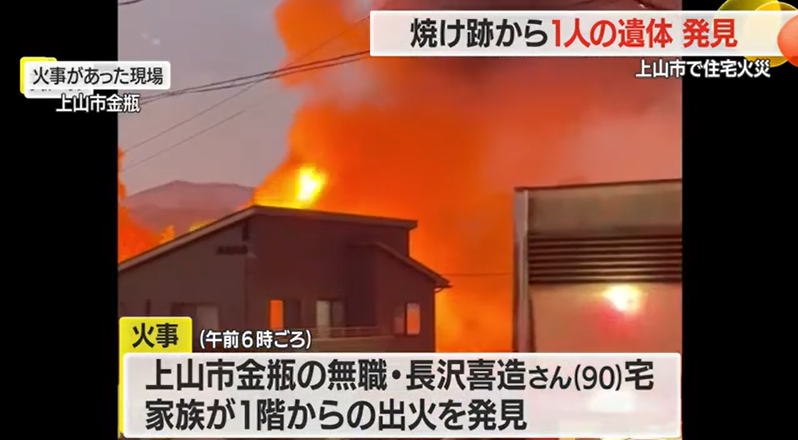 住宅は全焼し、焼け跡から1名の遺体が発見された。写真提供:さくらんぼテレビ