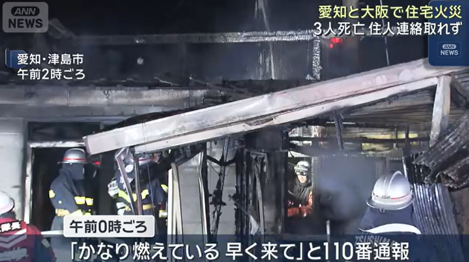 ②愛知県津島市市営住宅火災・・・4日午前0時ごろ、津島市唐臼町の市営住宅から出火し、火は約2時間半後に消し止められた。