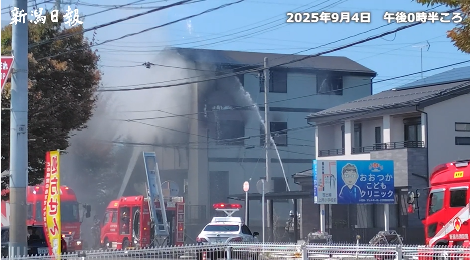 4日正午ごろ、新潟市中央区上所2丁目の木造3階建て住宅から出火し、2階と3階部分、およそ110m2を半焼した。 1名が負傷。