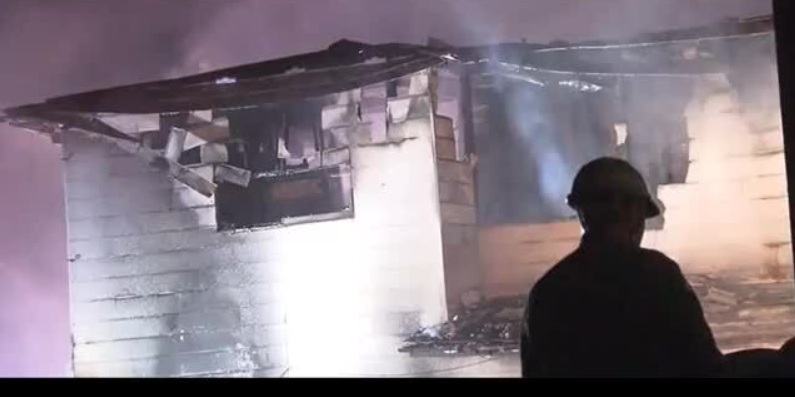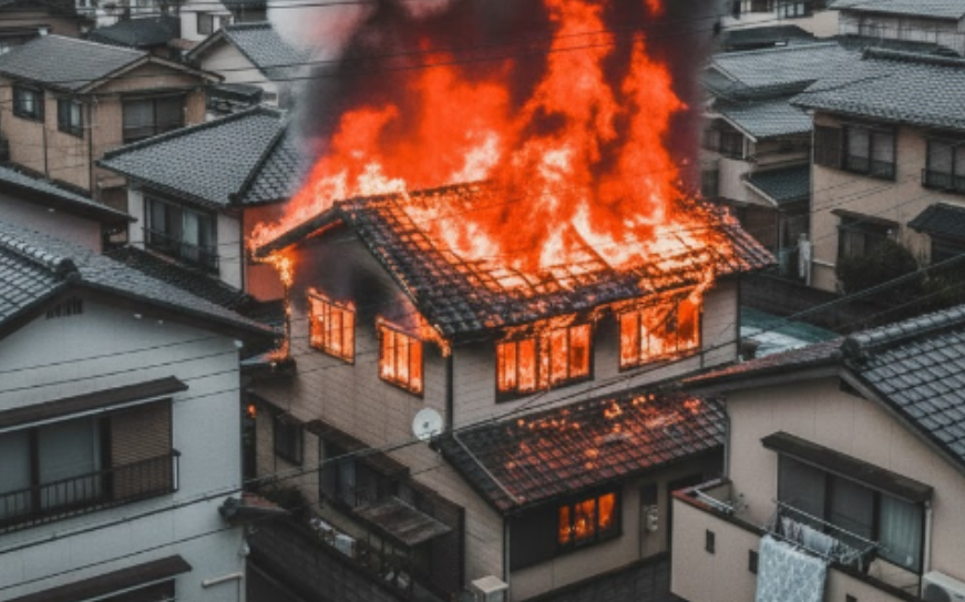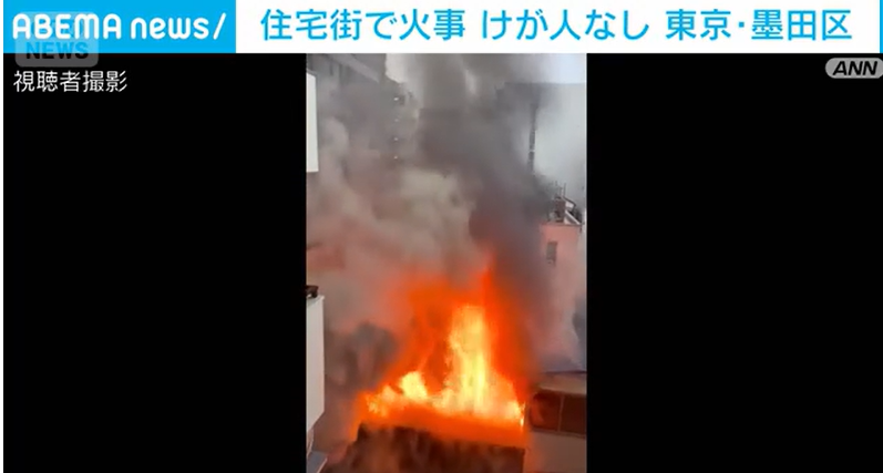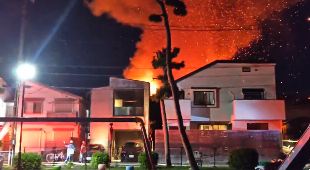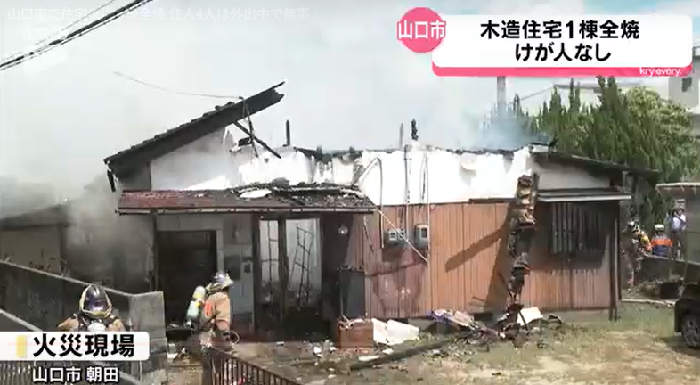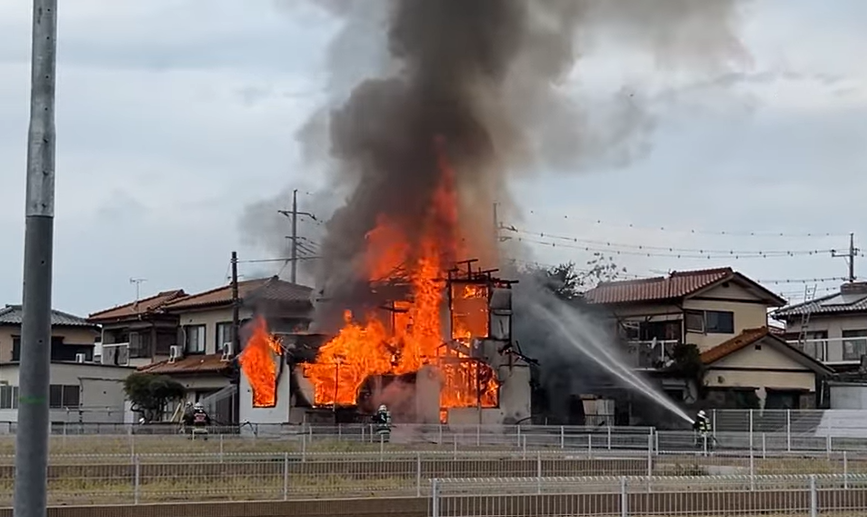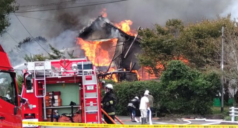 火元の住宅と隣接する住宅1棟が全焼した。住民5名は避難して無事・