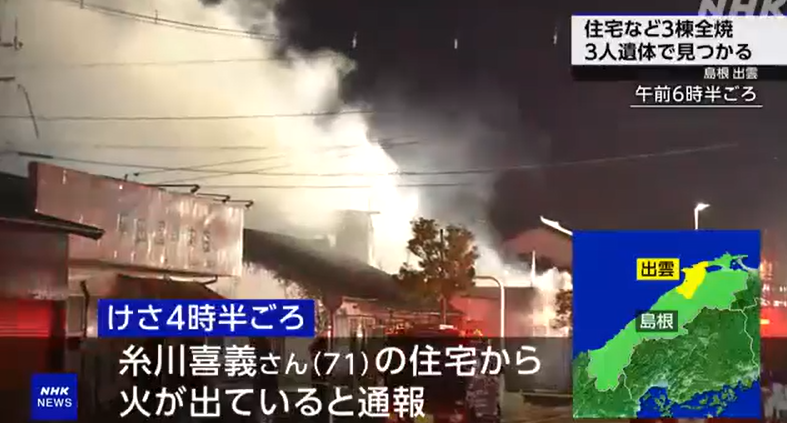 ③静岡県静岡市住宅火災・・・22日午前2時ごろ、静岡市駿河区西島の木造2階建て住宅の2階から出火し、火はおよそ4時間半後に消し止められた。
