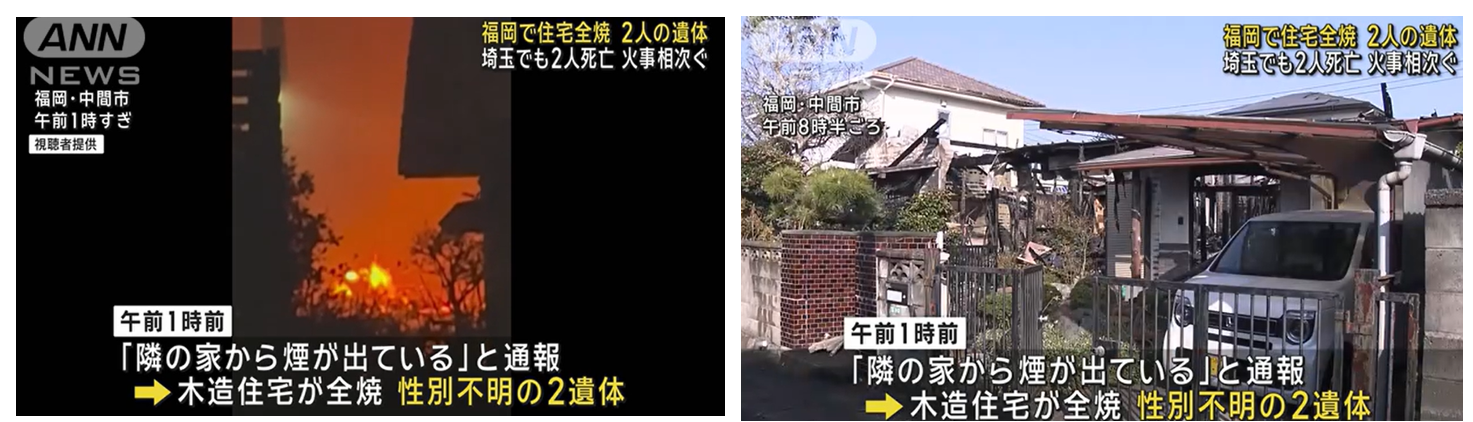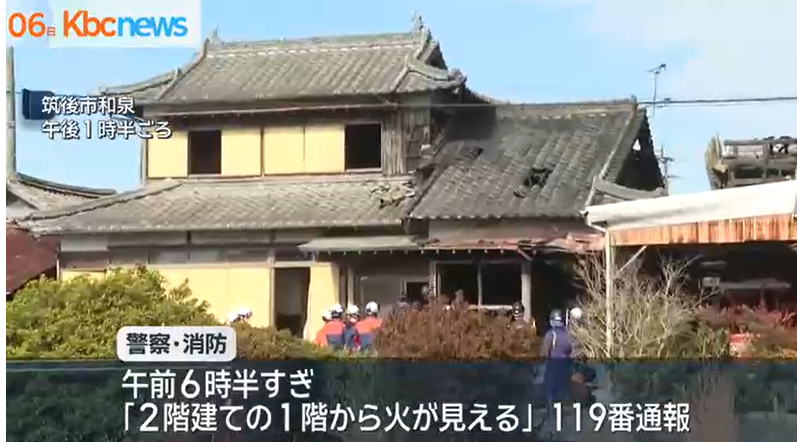 ⑤福岡県筑後市住宅火災・・・ 6日午前半すぎ、筑後市の木造2階建て住宅の1階から出火し、火はおよそ1時間半後に消し止められた。