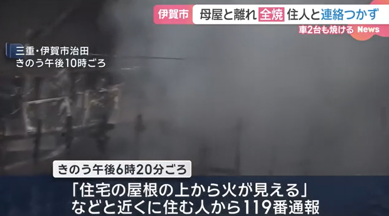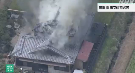 24日午後4時45分頃、名張市つつじが丘北の木造2階建て住宅から出火し、約10分後に消し止められた。