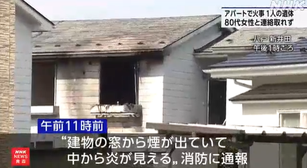 ①青森県八戸市集合住宅火災・・8日午後4時半まえ、八戸市大久保の3階建て集合住宅から出火し、消防車等13台が出動し、火はおよそ2時間後に消し止められた。