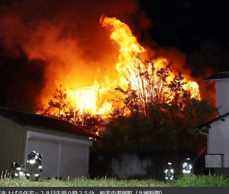 ④富山県氷見市住宅火災・・・22日正午ごろ、氷見市地蔵町の木造2階建て住宅から出火し、消防車等15台が出動し、火はおよそ4時間後に消し止められた。