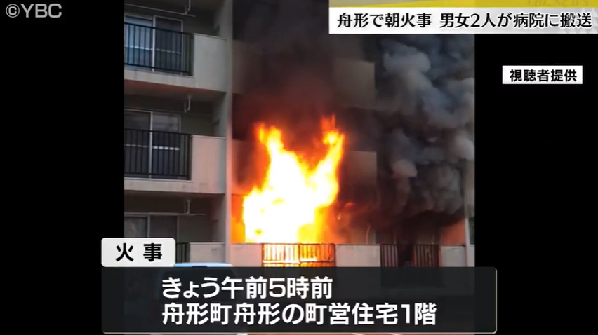 ②静岡県裾野市アパート火災・・・5日午後5時前、裾野市佐野の2階建てアパートの2階から出火し、消防車等8台が出動し、火は約1時間半後に消し止められた。