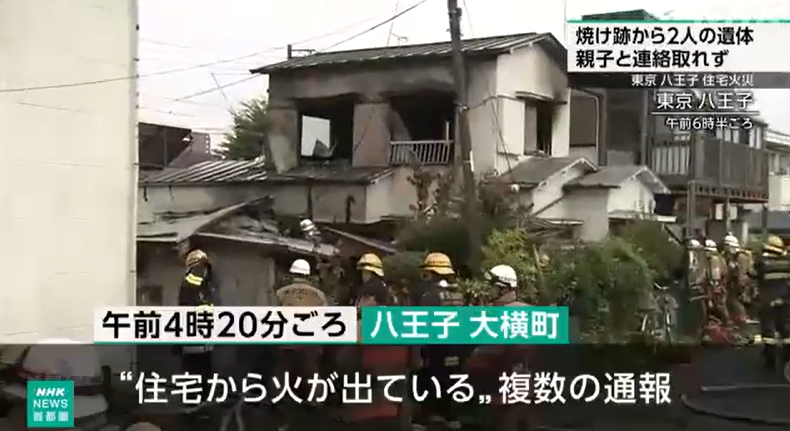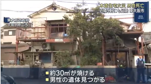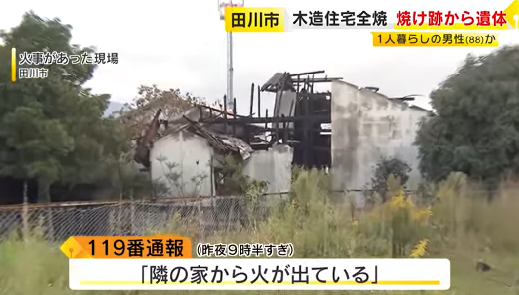 火元の住宅を全焼し、隣接する空き家1棟も全焼した。焼け跡から1名の遺体が発見された。