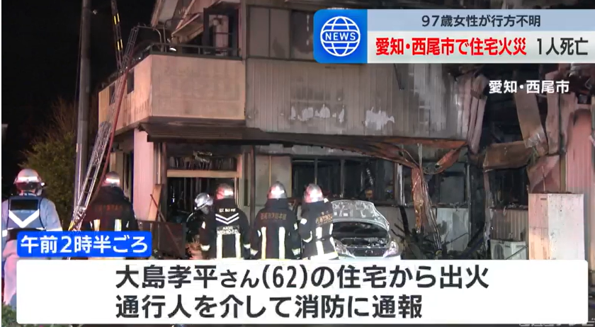 ②愛知県刈谷市住宅火災・・・8日午前10時20分ごろ、刈谷市広小路の住宅から出火し、消防車等10台が出動し、火は約3時間後に消し止められた。