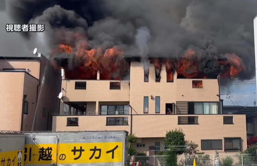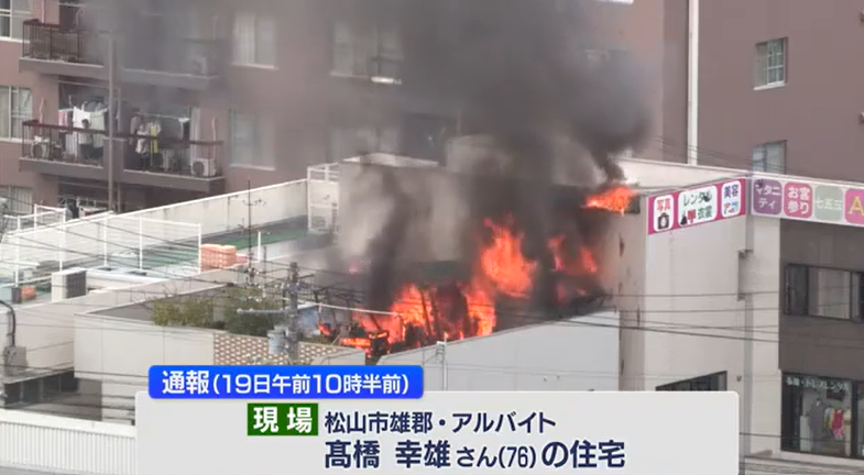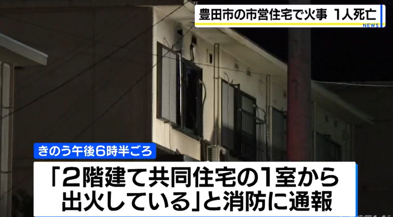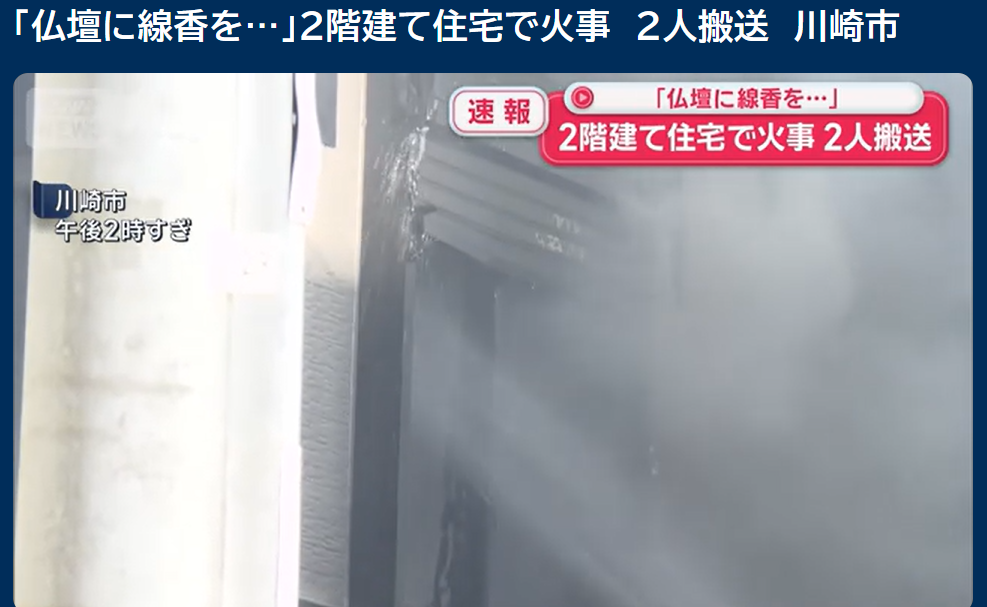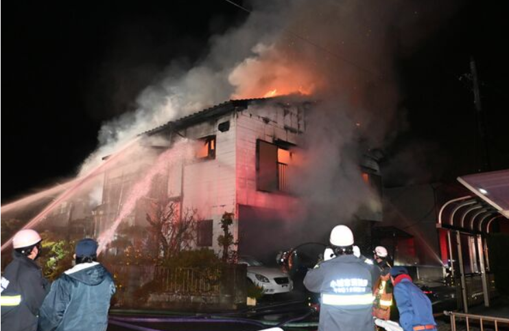 けが人は1名。出火当時、電気ストーブにバスタオルを干していて燃え移ったとみられる。