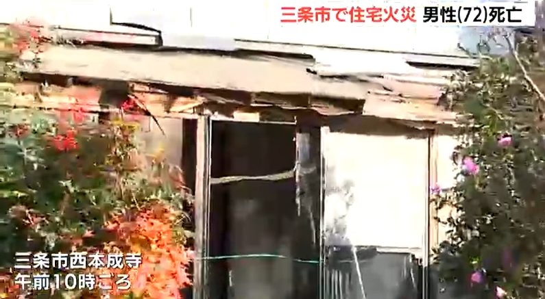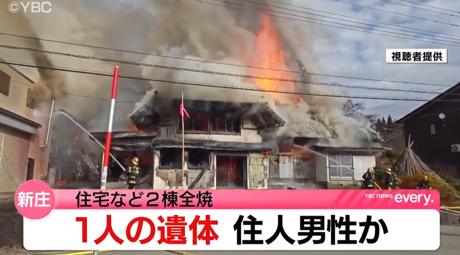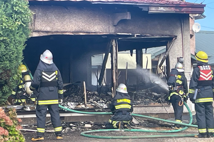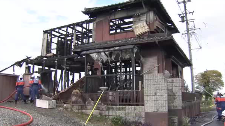 住宅は全焼し、焼け跡から1名の遺体が発見された。写真提供:さくらんぼテレビ