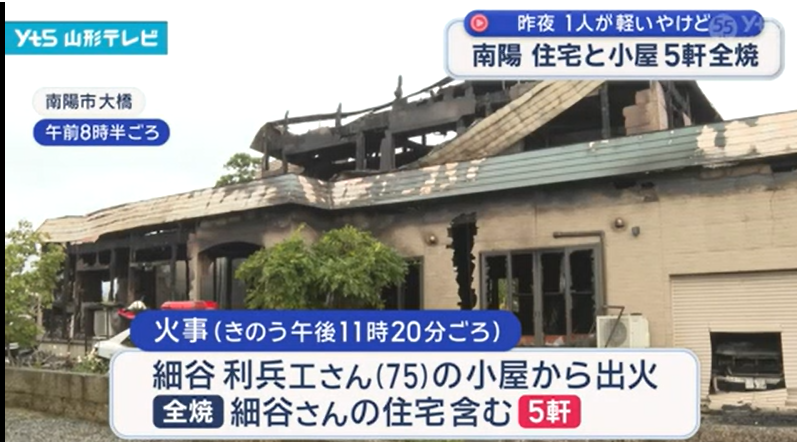 ④山形県上山市住宅火災・・・8日午前6時ごろ、上山市金瓶の木造2階建て住宅の1階から出火し、火は約3時間半後に消し止められた。