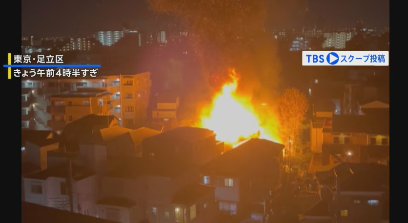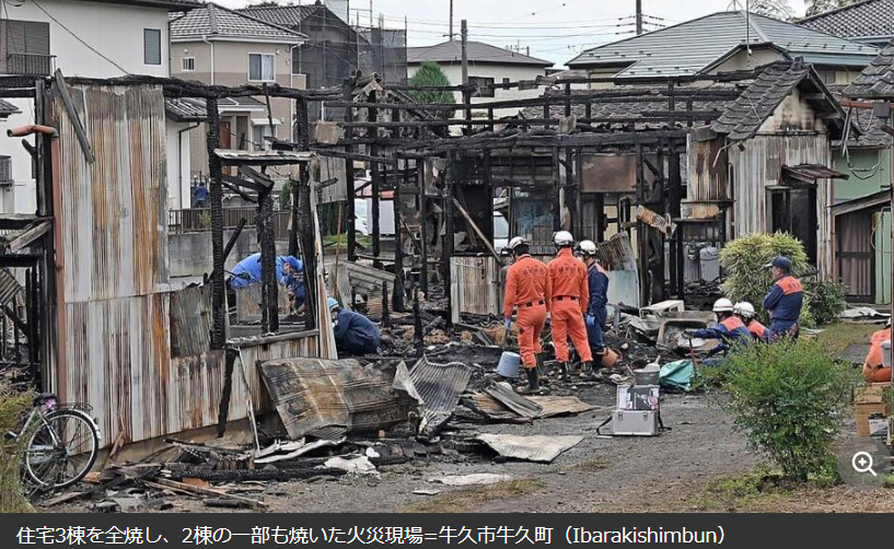 *午前4時ごろ久喜市菖蒲町のごく近い場所で、理容店と隣接する住宅、それに、木造2階建ての住宅と車3台がいずれも全焼した。