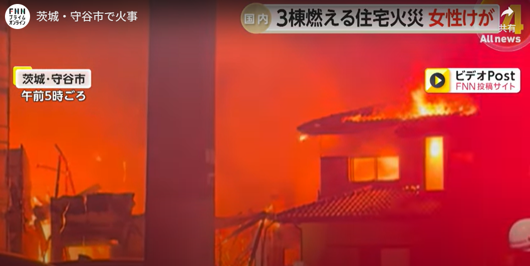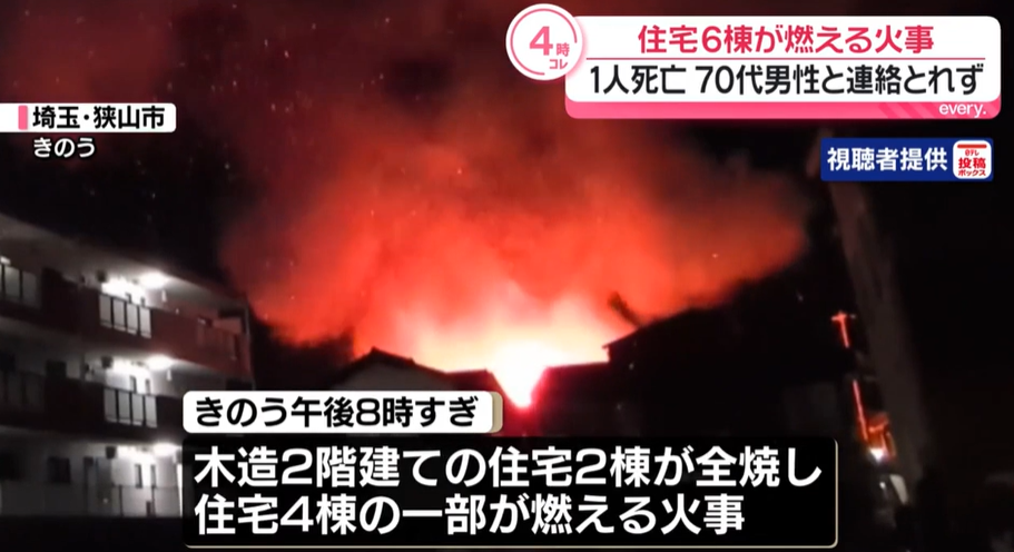 *午前1時半ごろにも桶川市小針領家で木造2階建ての住宅が全焼し、1人が軽いけがをした。