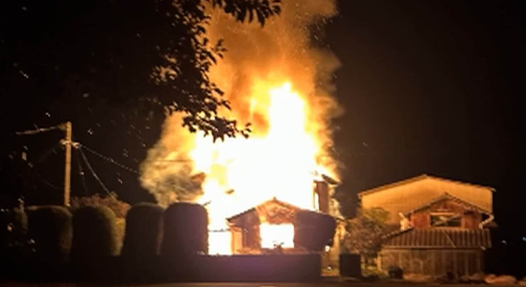 13日午前1時ごろ、愛媛県内子町平岡甲にある木造2階建て住宅(148m2)が全焼し、